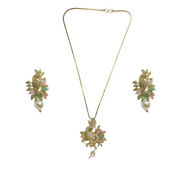 Peacock CZ Ad Diamond Pendant Set (Mint)